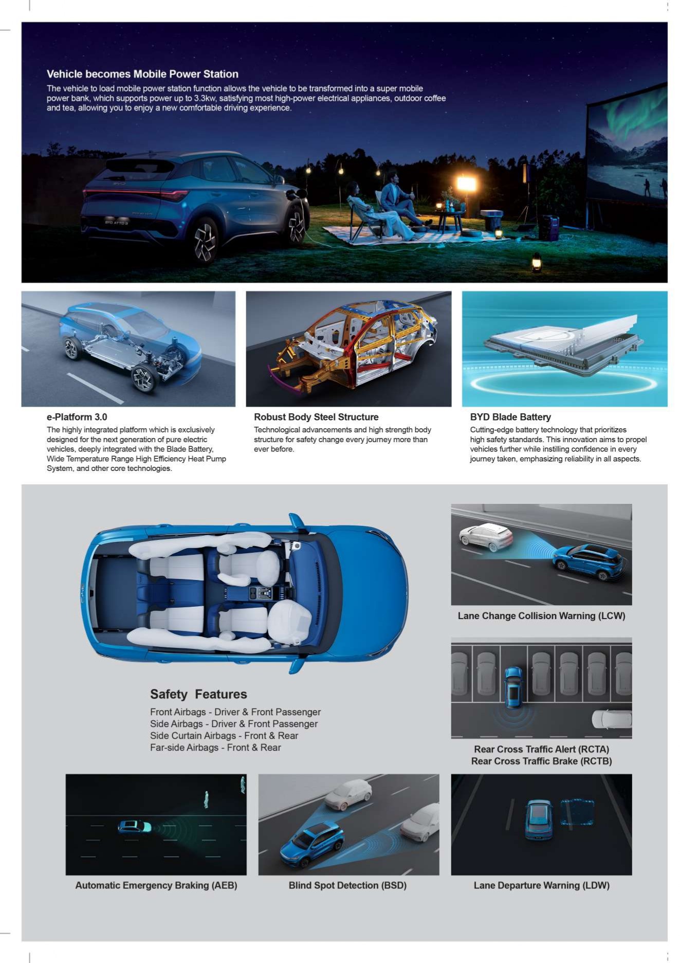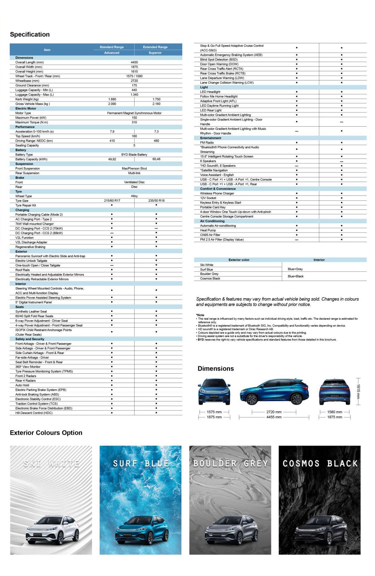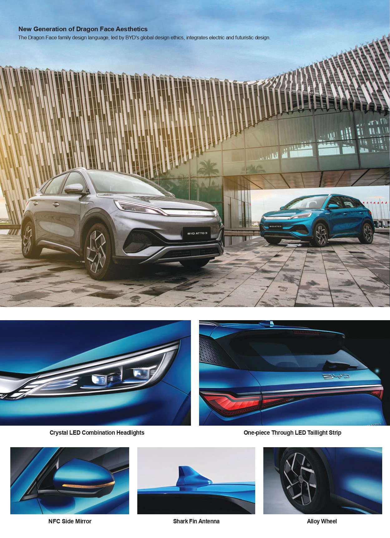 BYD Atto 3 dalam balutan warna Cosmos Black dengan trim D-pillar hitam terbaru dan trim jendela hitam, memancarkan aura sporty yang super keren dan trendi. Pilihan warna lain: Ski White, Boulder Grey, Forest Green dan Surf Blue
