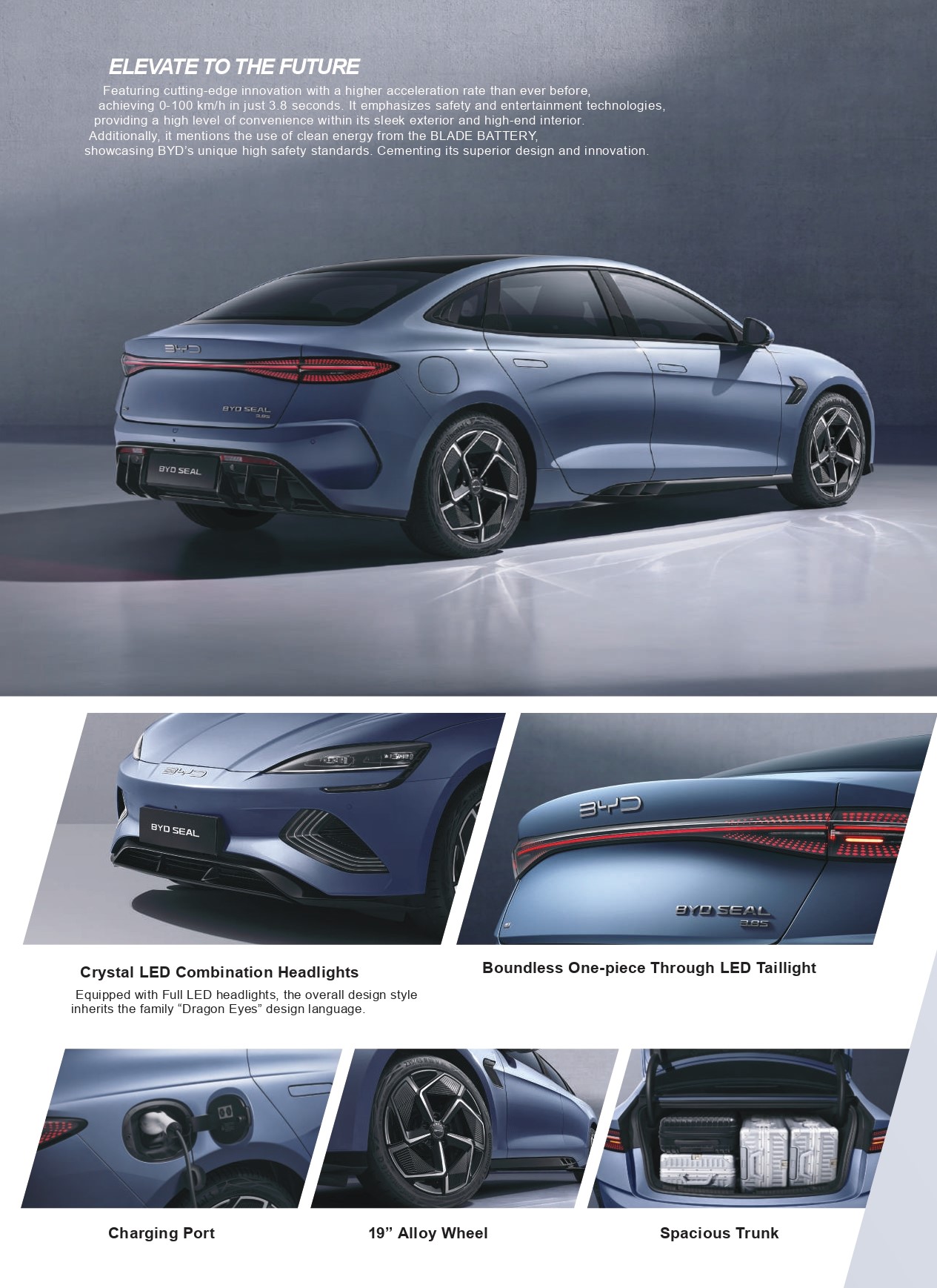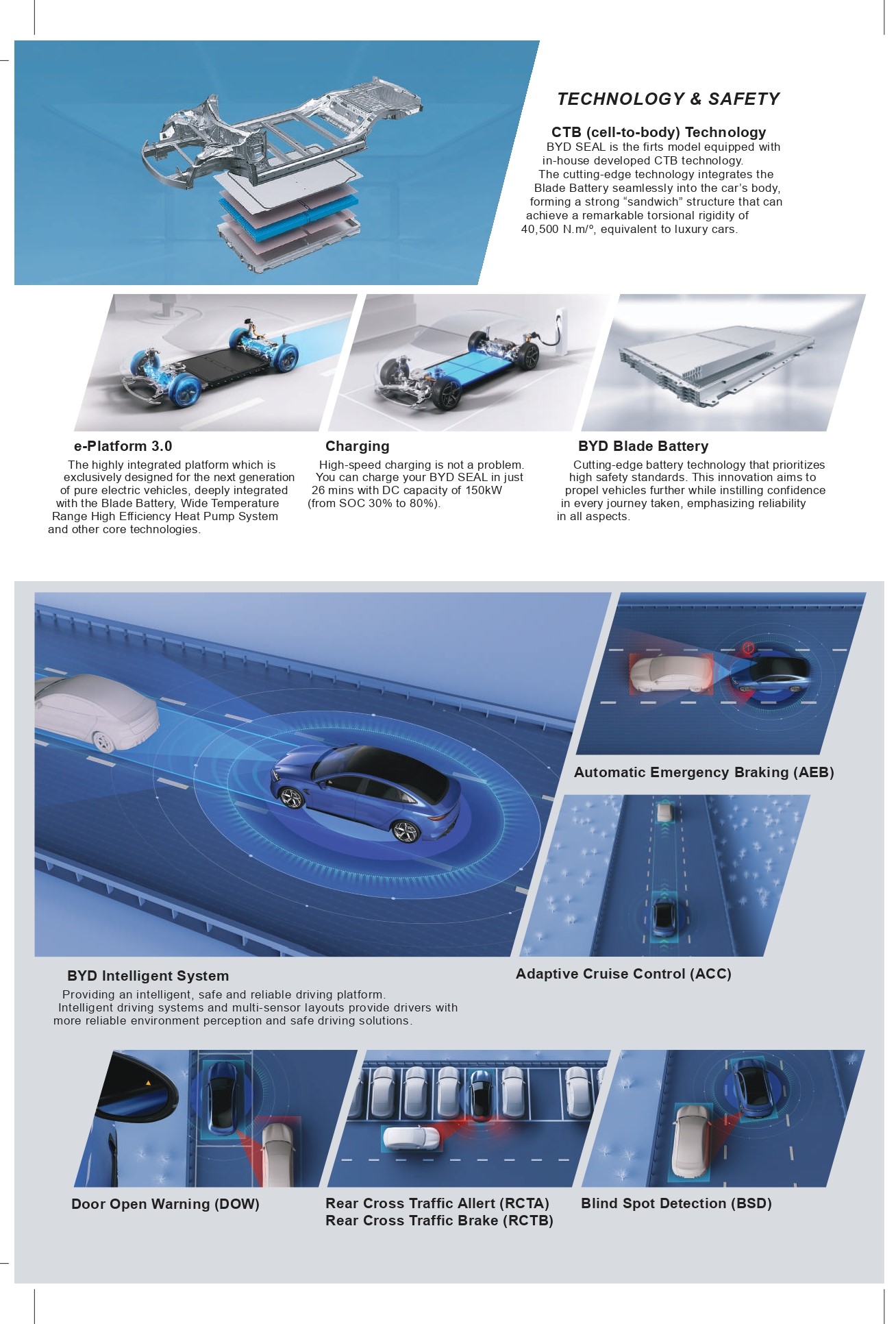 BYD SEAL dibangun dengan platform BYD e-platform 3.0, dirancang untuk generasi berikutnya dari mobil listrik pintar yang menawarkan empat keunggulan utama: kecerdasan, efisiensi, keamanan, dan estetika. Ini tidak hanya lebih mengintegrasikan dan standarisasi komponen inti, tetapi juga membangun struktur tubuh baru, arsitektur digital dan elektrik, serta sistem operasi kendaraan BYD yang diperbarui.